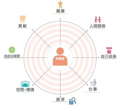 『8バランス』とは、人生における幸せをかりやすく整理したものであり、人生のコンパスとなる指針です。