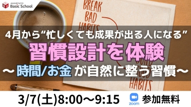 ベーシックスクールでは、幸せ体質を習慣形成するのに必要な「人格」「考え方」「コミュニケーション」「金銭・時間管理」などの学びを習慣化するサポートをします。