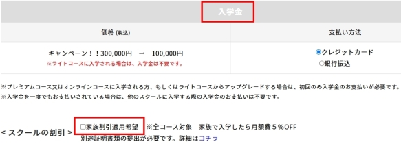 ご家族で入学の場合「家族割引適用希望」にチェック