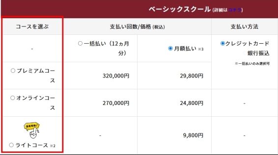 STEP1.2 コースの選択と支払方法の選択
