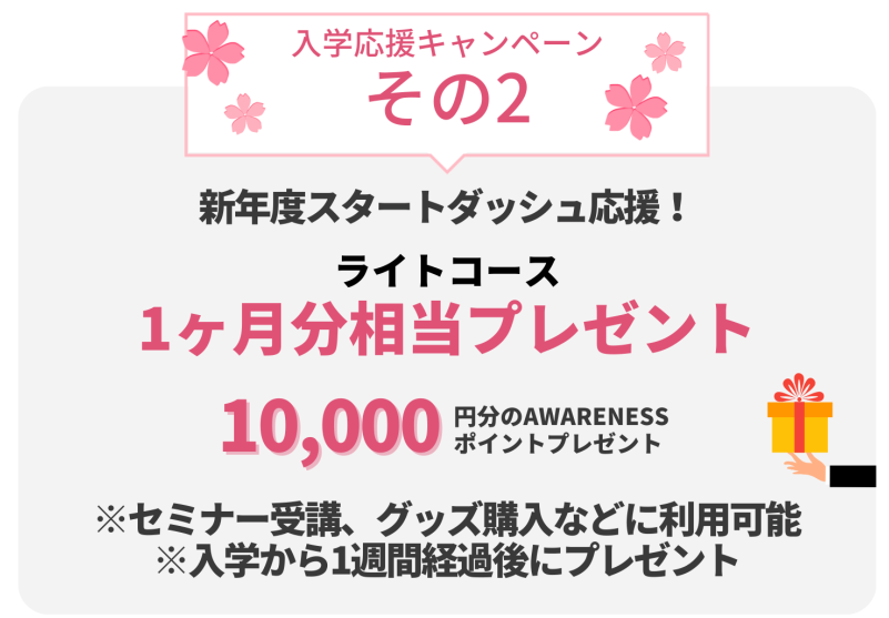 3月31日(月)までに入学された方の先行特典です。