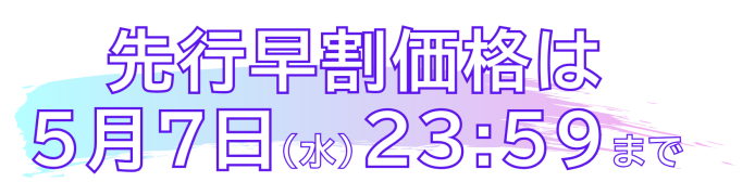 5/7(水)以降もT2Sにお申込いただけますが、先行早割価格の適用外となりますのでご確認の上、お申込みください。