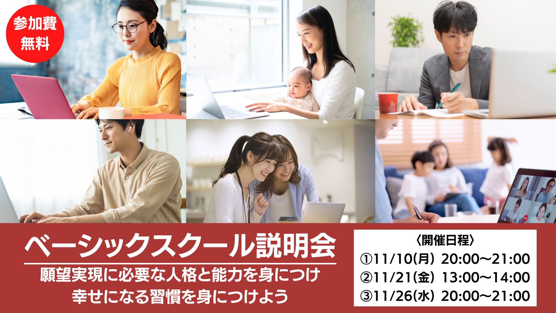 ベーシックスクールの仕組みを使って、反復し習慣化することで成功するための考え方を体得できるようになります。今までの単発のセミナーではなくスクール形式にすることでセミナー受講の価格を抑え、負担を少なくすることができます。