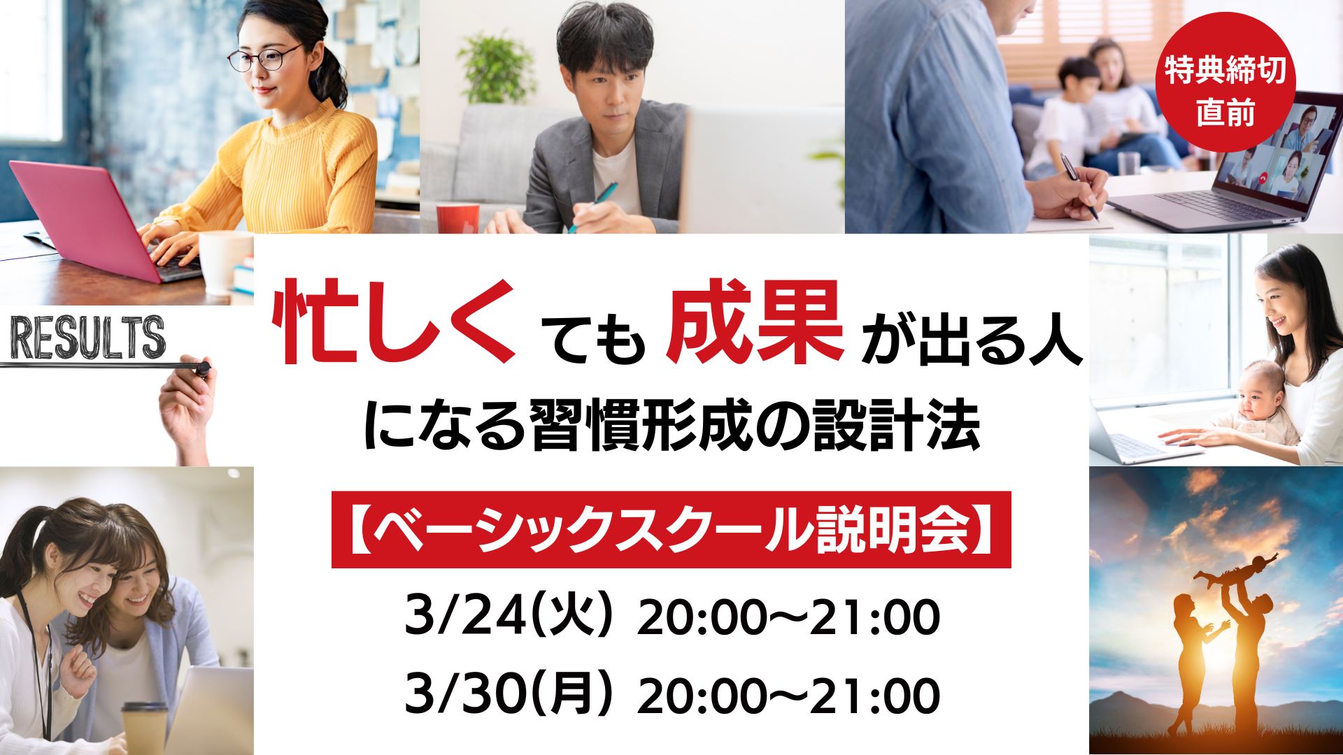 ベーシックスクールの仕組みを使って、反復し習慣化することで成功するための考え方を体得できるようになります。今までの単発のセミナーではなくスクール形式にすることでセミナー受講の価格を抑え、負担を少なくすることができます。
